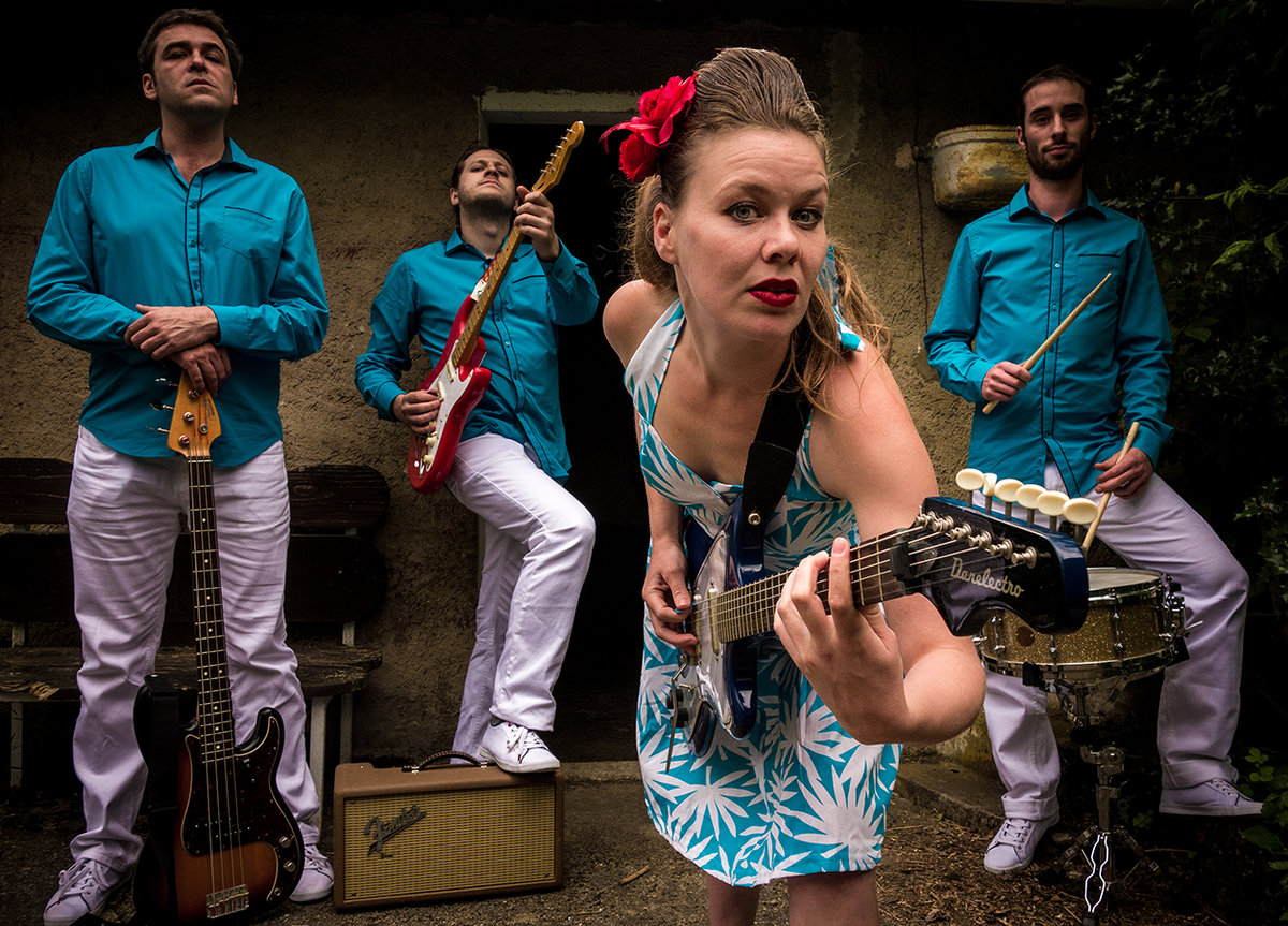 Moms I’d Like To Surf-French Surf Rock Band with John John de Vito (Lead), Kristina Fabula (Baryton)-Frankie Goodlord (Bass) & Bobby Ballard (Drums). This band acts as if surf music did not disappear in 1966 charts. As they are not Californian, there is a Frenchy side and a lot of "oo-la-la" but especially a lot of what we have to fuck !!! ... more